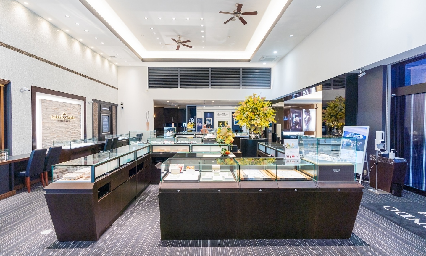 落ち着いた上質な空間で、指輪選びのひとときをゆったりとお楽しみいただけるのも「一真堂 桜木インター店」の大きな魅力です。